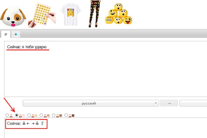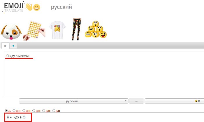 Перевод предложения в Emojitranslate - Ниже в блоке появится результат, который также можно скопировать и вставить в окне ввода на любом другом сайте.