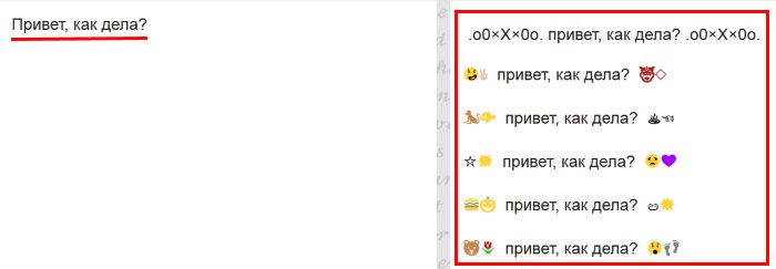 Ресурс на странице https://lingojam.com/TextSymbols позволяет вам писать предложения и переводить их уже украшенными Эмодзи и различными символами. Таким образом, вам не нужно будет придумывать, какими смайлами дополнять свои предложения при общении.