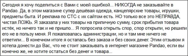 Параллельно с запуском интернет-магазина стартовала рекламная кампания, где всячески прославляются достоинства «Пандао». На сайт пришли сотни покупателей, которые смогли самостоятельно сформировать своё мнение о магазине. И отзывы о Пандао получились примерно следующими:
