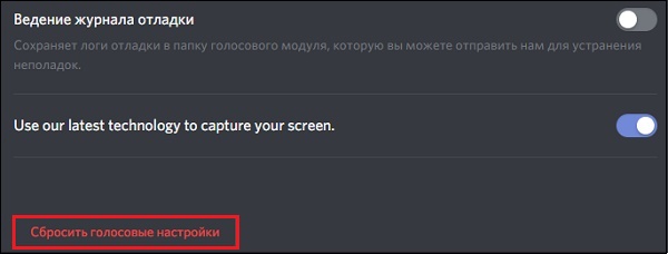 При возникновении проблемы с тем, что не слышно собеседника в Дискорд, рекомендуется сбросить голосовые настройки.