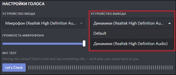 Неправильно установленное устройство вывода звука в настройках Дискорда может вызывать отсутствие слышимости вашего собеседника.