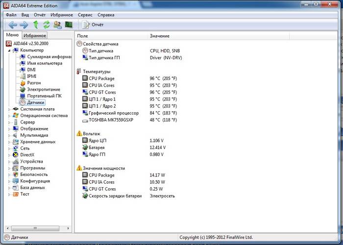 Сегодня все значимые детали компьютера снабжены датчиками температуры. Просмотрев информацию с них можно определить, происходит ли перегрев и насколько. Для этого можно воспользоваться специальными утилитами, например, AIDA64.