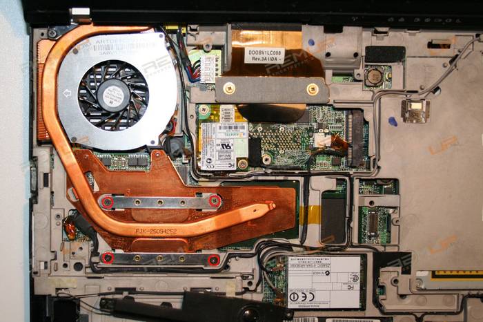 Наибольшему нагреву подвержены следующие компоненты ноутбука: