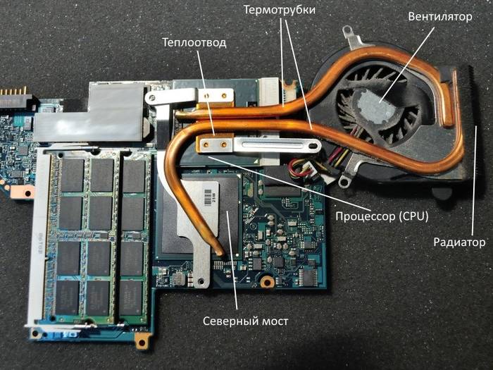 Стандартная система охлаждения ноутбука состоит из следующих частей: