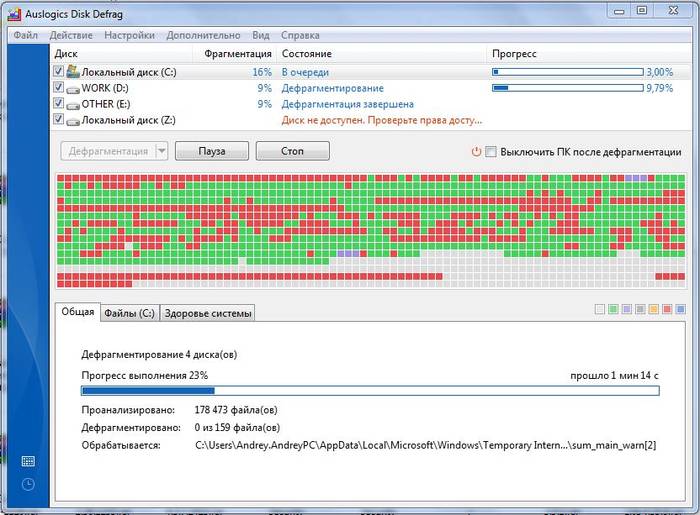 Следует учитывать, что дефрагментация происходит достаточно долго, особенно если ее давно не делали, а объем накопителя большой. Поэтому лучше поставить ее на ночь.