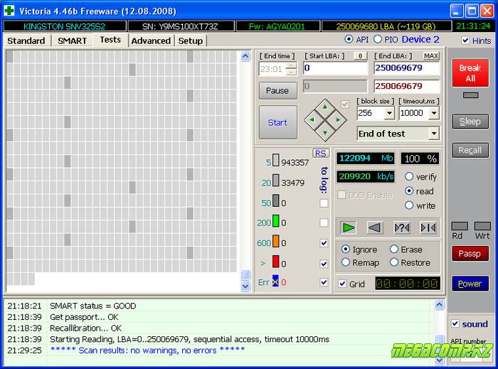 Рассмотрим порядок действий для поиска и устранения сбойных секторов с помощью утилиты Victoria: