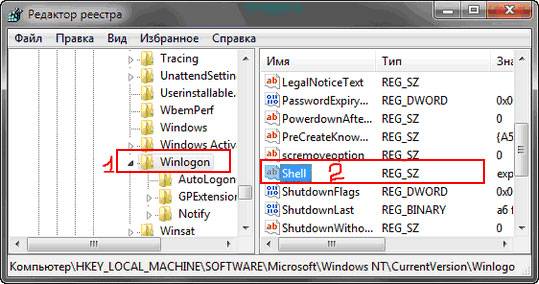 - в окне редактора реестра необходимо найти ветку со значением HKEY_LOCAL_MACHINE / SOFTWARE / Microsoft / WindowsNT/CurrentVersion/Winlogon;