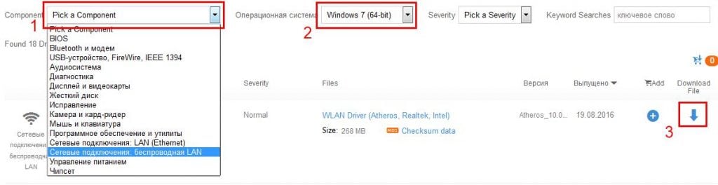 - Выбираете устройство, для которого хотите загрузить драйвер и указываете версию своей операционной системы.