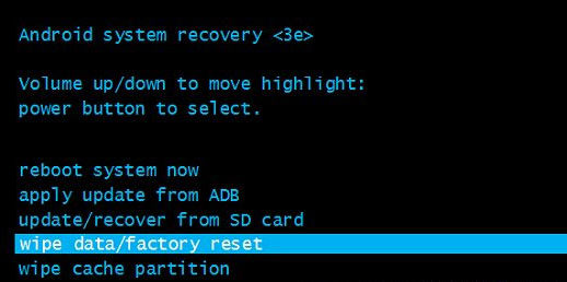 - Когда вам удастся войти в меню, выберите пункт «Wipe data/Factory reset». Для замены пунктов используйте «качельку» громкости;