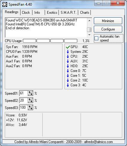 Как же измерить температуру? Не полезем же мы с градусником в рабочий системный блок? Нет, конечно. Существуют специальные программы, которые позволяют фиксировать степень нагрева всех составных частей компьютера и давать команды вентиляторам по увеличению или снижению частоты вращения.
