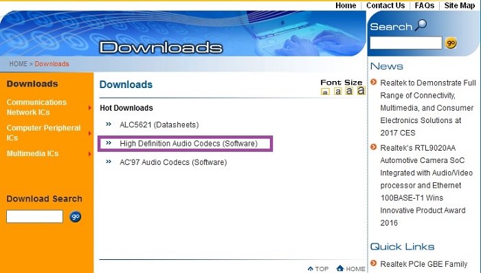 Если вы обыскали все службы и соответствующие панели, а Realtek HD нигде нет – нужно его скачать. Чтобы это сделать, откройте страницу загрузки ПО — http://www.realtek.com.tw/downloads/ и укажите из 3 необходимый для вашей системы.