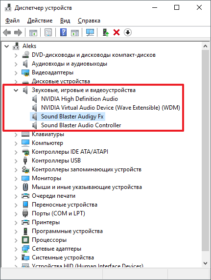 В «Диспетчере устройств» нужно открыть раздел «Звуковые, игровые и видеоустройства» и проверить там наличие звуковой карты. Если звуковой карты нет, либо она отображается как «Неизвестное устройство», то вам нужно установить драйверы для звуковой карты.