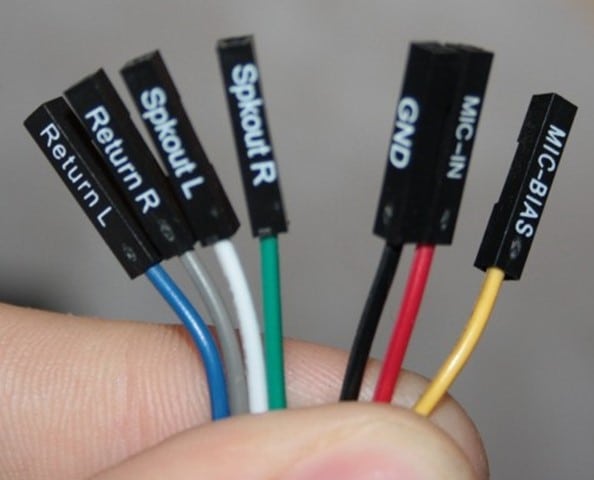 Достаточно распространенная причина проблем с наушниками и микрофоном на компьютере это неправильно подключенная передняя панель на системном блоке. Дело в том, что передняя панель системного блока (там, где располагаются разъемы для наушников и микрофона) подключается к материнской плате при помощи набора одиночных проводников, каждый из которых нужно подключить к определенному контакту. Из-за этого очень легко ошибиться и перепутать контакты.