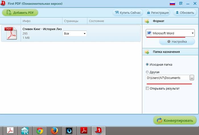 «First PDF» — небольшая программа-конвертер, позволяющая преобразовать PDF в Word.
