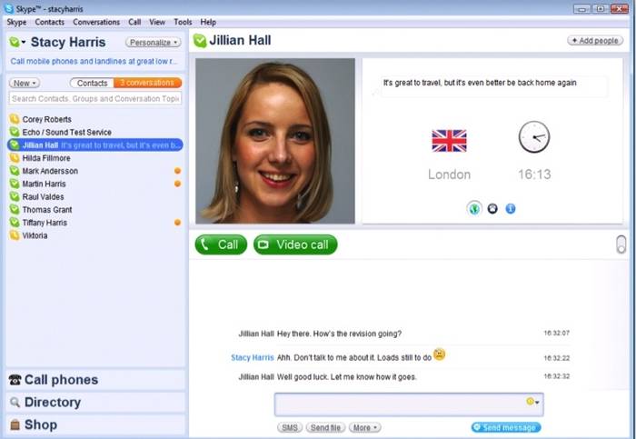 - возможность интеграции с социальной сетью Фейсбук (можно отправить другу в Фейсбуке сообщение из скайпа);