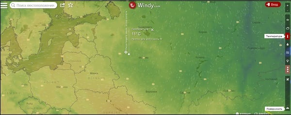 - Для работы с сервисом необходимо посетить сайт Windy.com.