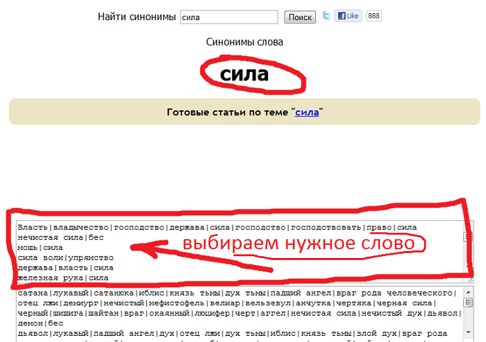 Чтобы воспользоваться онлайн сервисом Synonyma: