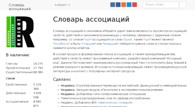 Сайт будет очень полезен как ученикам и студентам, так и учителям и преподавателям. В базе сервиса большой объем слов: существительные – 68 380 слов, глаголы – 16 275, прилагательные – 27 875 слов.