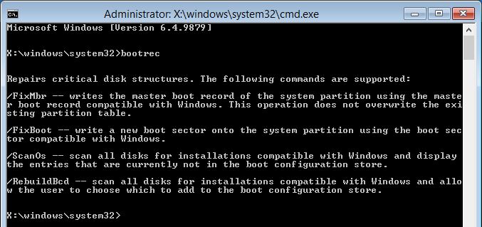 Работа с этим инструментом осуществляется посредством командной строки. Однако, поскольку у вас проблемы с загрузкой операционной системы, очевидно, что вы не сможете запустить Bootrec.exe непосредственно в Windows.