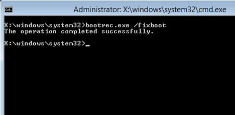 Чтобы записать новый загрузочный сектор, используйте команду bootrec.exe /fixboot.