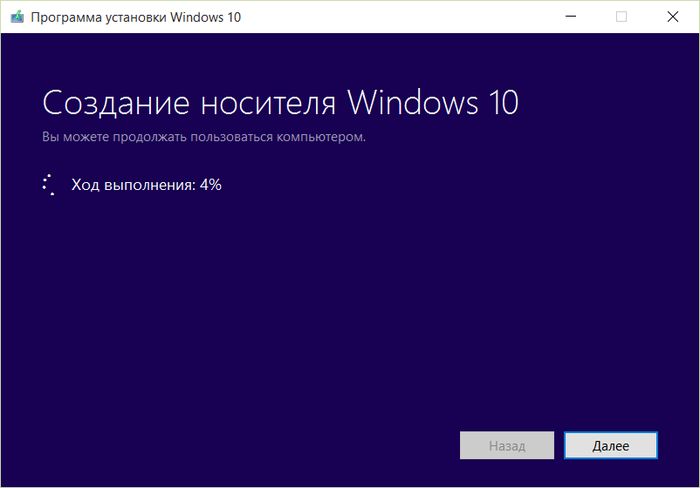 При выборе любого из носителей сначала произойдет загрузка с сервера Microsoft выбранного дистрибутива ОС.