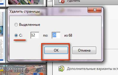 - если хотите убрать из документа pdf одну страницу — включите опцию «Выделенные»;