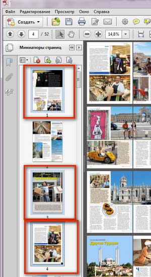- нажмите иконку «Миниатюры страниц» (самая первая в боковом меню);