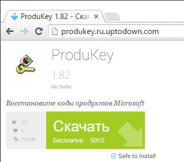 Но если эти программы не установлены на компьютере, только лишь ради получения ключа активации Windows возиться с их установкой нет смысла. Куда проще для этих целей использовать небольшую программку ProduKey. Она не требует инсталляции. ProduKey можно скачать с ее официального сайта бесплатно.