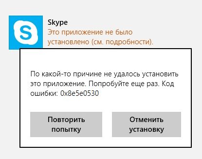 По какой-то причине не удалось установить это приложение. Попробуйте еще раз. Код ошибки: 0x8e5e0530
