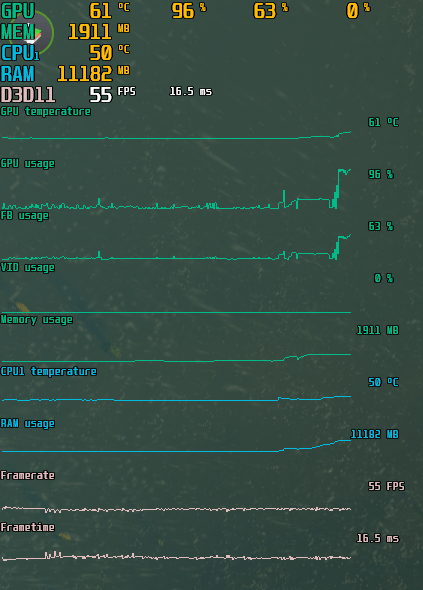 Если все было сделано правильно, то в левом верхнем углу экрана появится мониторинг с нужными вам параметрами.