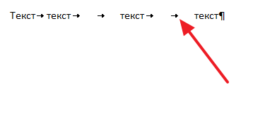 Символы табуляции будут отображаться в тексте в виде длинных стрелок, направленных вправо. Для того чтобы удалить их и убрать большие пробелы между словами просто выделите стрелки мышкой и нажмите на клавишу ПРОБЕЛ.