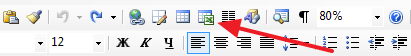 Также таблицу можно создать при помощи кнопки на панели инструментов. Но, при использовании данного способа максимальный размер таблицы будет составлять 4 на 5.