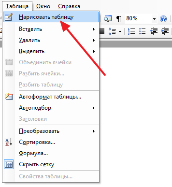 Также вы можете нарисовать таблицу вручную. Для этого выберите пункт меню «ТАБЛИЦА – НАРИСОВАТЬ ТАБЛИЦУ»