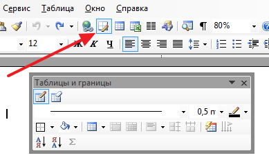 Для дальнейшего редактирования таблицы нужно открыть «Панель границ». Для этого нажмите на соответствующую кнопку на панели инструментов.