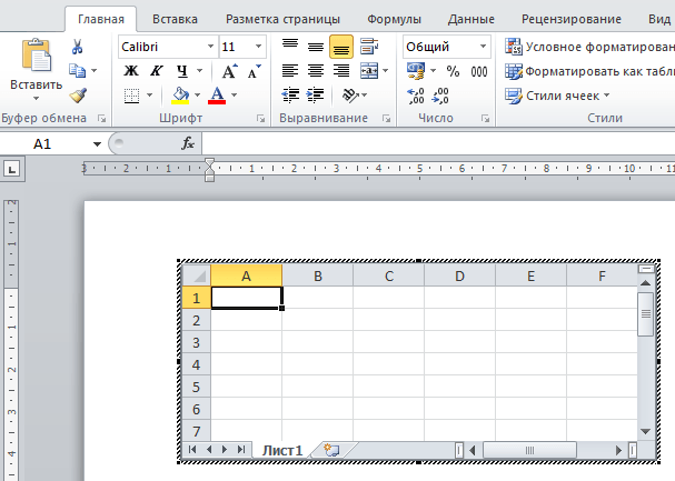 После выбора данного пункта на странице Word появится небольшое окошко с таблицей Excel. В такой таблице можно работать точно также как и в программе Excel. Вы можете создавать формулы и пользоваться всеми остальными функциями табличного процессора Excel.