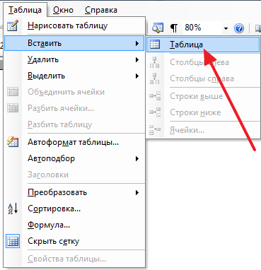 Если вы все еще используете текстовый редактор Ворд 2003, то для того чтобы сделать таблицу вам необходимо открыть выпадающее меню «ТАБЛИЦА – ВСТАВИТЬ – ТАБЛИЦА».