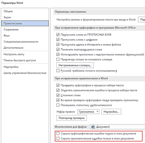 Например, вы можете отключить проверку орфографии и грамматических ошибок в процессе набора текста. В этом случае проверка орфографии и грамматики будет отключена для всех документов.