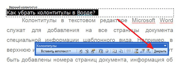 После того как колонтитул удален, нажмите на кнопку «Закрыть».