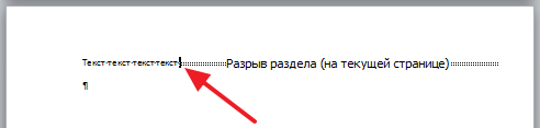 Если у вас возникла необходимость удалить разрыв раздела, то это делается очень просто. Для начала нужно активировать показ непечатаемых знаков, это позволит видеть разрывы как обычные символы и упростит их удаление.