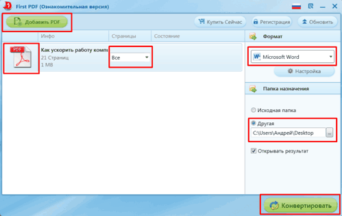 - Быстро работает с преобразованием PDF-документов в DOC и обратно.
