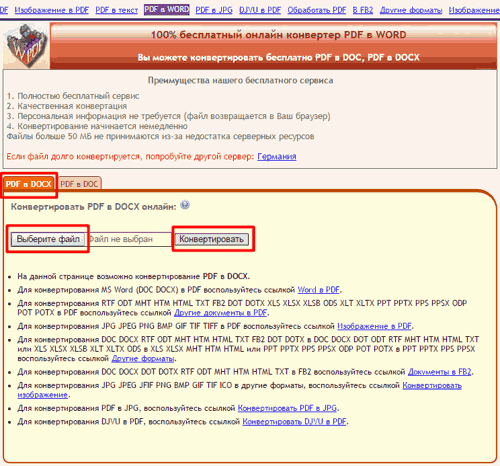 Если мы говорим о сервисе на сайте pdftoword.ru, то здесь все просто.