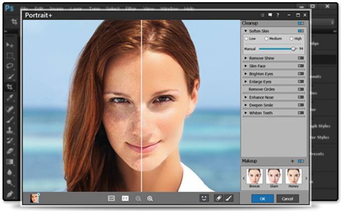 - возможность не только поверхностной обработки изображения, но и полное изменение фотографии с помощью специальных инструментов;