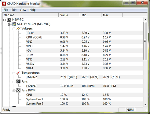 Кроме информации о температуре программа HWMonitor собирает все остальные данные из аппаратных датчиков и отображает эту информацию в удобном для пользователя виде. Например, кроме температуры, данная программа отображает информацию о напряжениях, скорости вращения кулеров и уровне нагрузки.