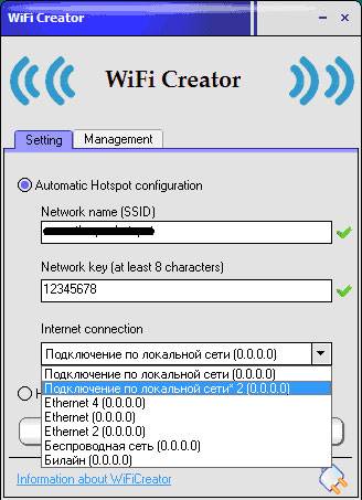 Но в целом, WiFi Hotspot Creator довольно проста в использовании, только запускать ее надо от имени администратора, иначе программа откроется, но раздавать не будет.