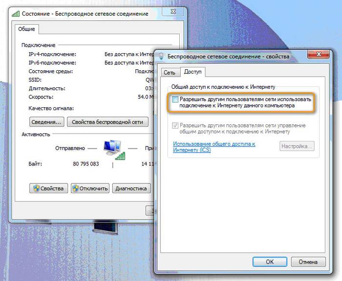 - нажмите галочку «Разрешить другим пользователям сети использовать подключение к интернету».