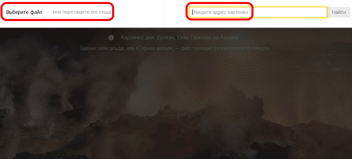 Загрузите изображение на Яндекс сервис при помощи специальной кнопки - Выберите один из вариантов загрузки изображения – с вашего компьютера или по ссылке из Интернета.