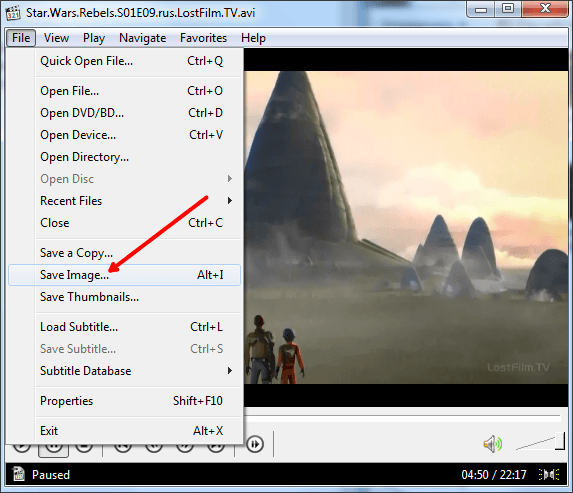 Media Player Classic – еще один очень популярный видео плеер. Если вы используете именно его, то для того чтобы сделать фото из видео вам необходимо открыть выпадающее меню «File» и выбрать пункт «Save Image».