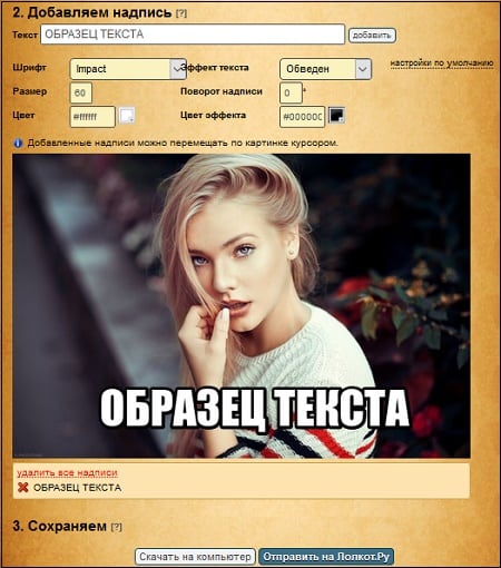 - Lolkot.ru – быстрое наложение текста на картинку