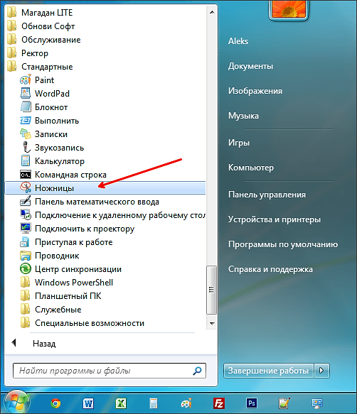 Также в Windows 7 и более новых версиях Windows есть программа под названием Ножницы. Данная программа позволяет сфотографировать любую часть экрана монитора. При этом пользователь может сразу отредактировать и сохранить полученное изображение. Для того чтобы запустить программу Ножницы вам нужно открыть меню Пуск и перейти в «Все программы – Стандартные».