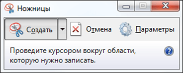 После запуска программы «Ножницы» появится небольшое окно. После появления окна, вам нужно выделить часть экрана.